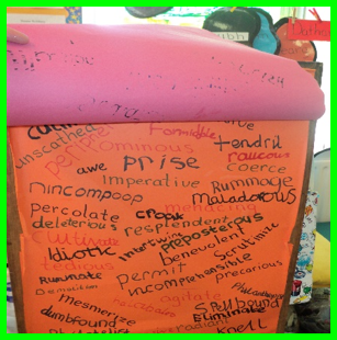 3. Word of the day poster: Display a poster at pupil’s level on which one pupil writes the Word-of-the-day each day. When the poster is full of words don’t throw it out but place a new poster over it (or display elsewhere). This way when pupils are writing stories they can lift the new poster (like a flip chart) to check for older Words-of-the-day. Pupils love being independent and finding the words themselves. I find covering the poster with clear contact paper gives it longevity.