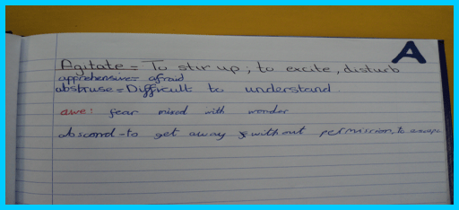 5.Word-of-the-day logbook: Likewise, the pupils can use a copy/ notebook to log their Word-of-the-day, its meaning and write a sentence using it. E.g. In the T page, they can record their word-of-the-day.