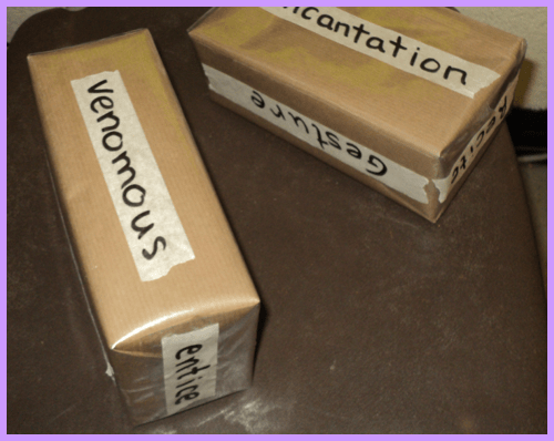 - Each takes a turn turning a card word side up which they have to put into a sentence.