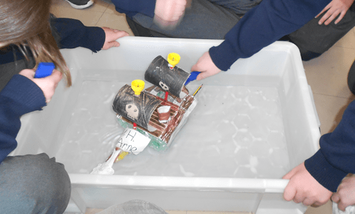 Each team designed a boat that would first of all float on water. They then added a magnet to their boat to ensure they could use the force of another magnet to move the boat.
