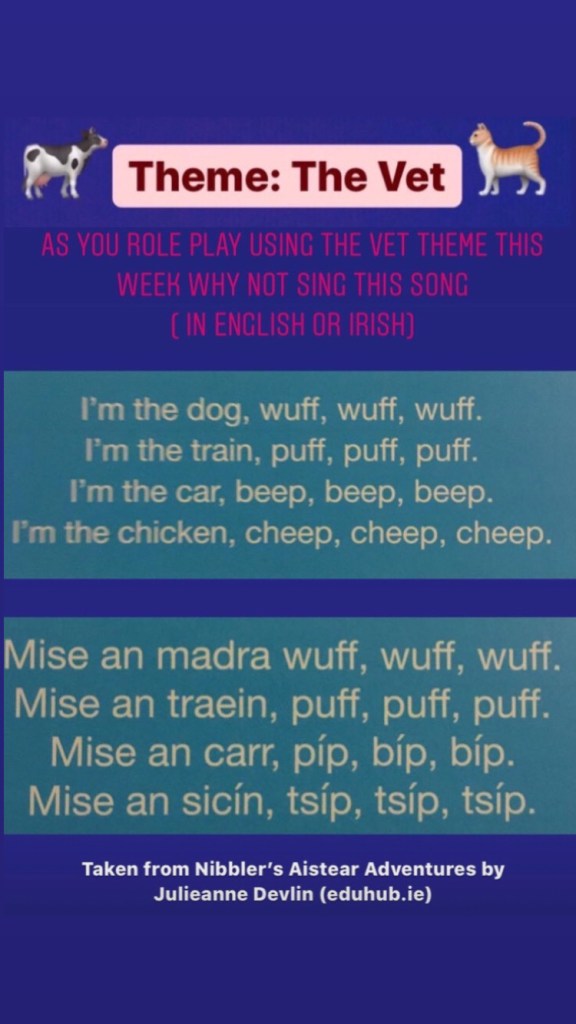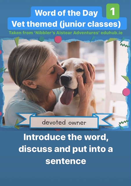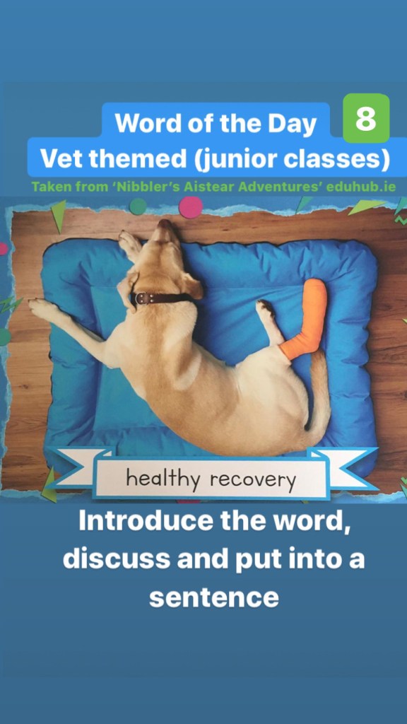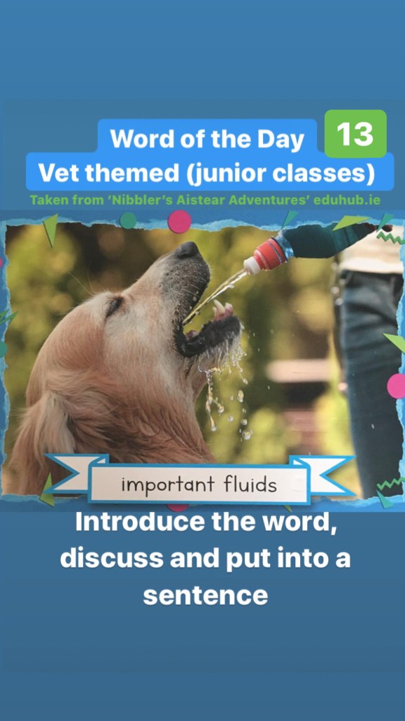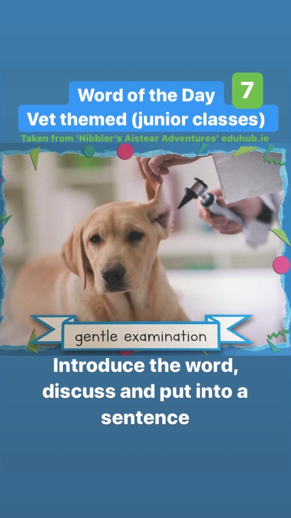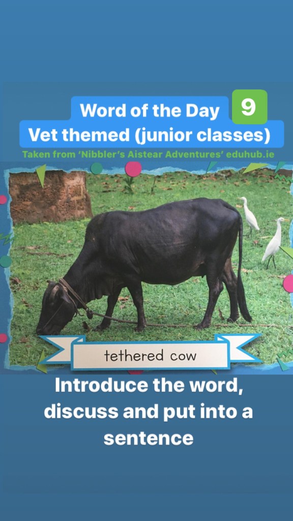 To aid with current distance learning, which unfortunately will still be in place for another while, I have posted some ideas from my resource Nibbler’s Aistear Adventures (www.eduhub.ie or http://www.cleverkids.ie) which might be useful for parents and teachers during remote teaching. There is enough content here to cover you for a few weeks with a new word of the day each day, learning through play activity and illustrations to encourage maths discussion.