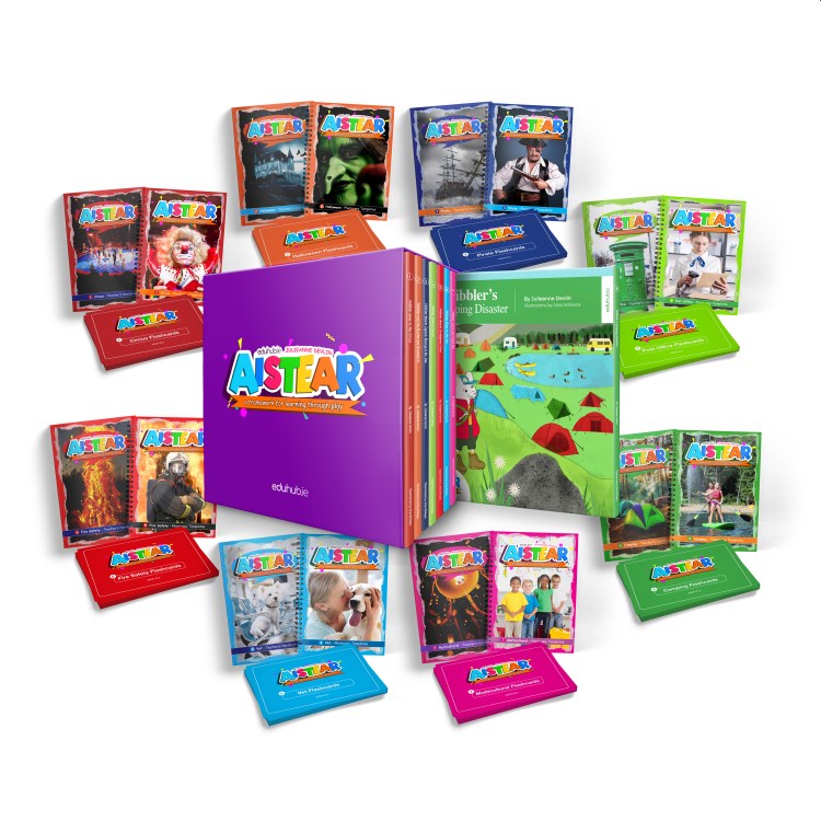 - 8 themed big books in English (agus as Gaeilge). Even on their own these big books provide lots of learning opportunities (English/ Gaeilge/ maths). They are perfect for Critical Thinking and Book Talk or Book of the Month with various activities, suitable questions and ideas for subsequent retellings in the back section of each book. More detail at… https://julieannedevlin.com/big-books-flashcards/