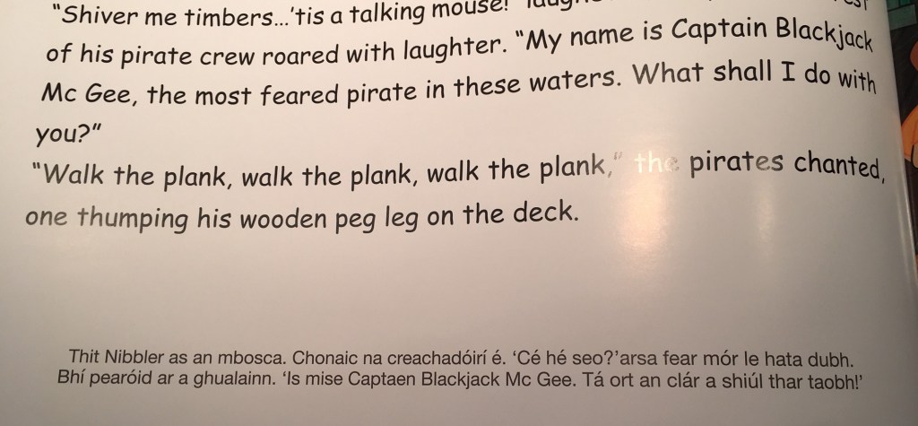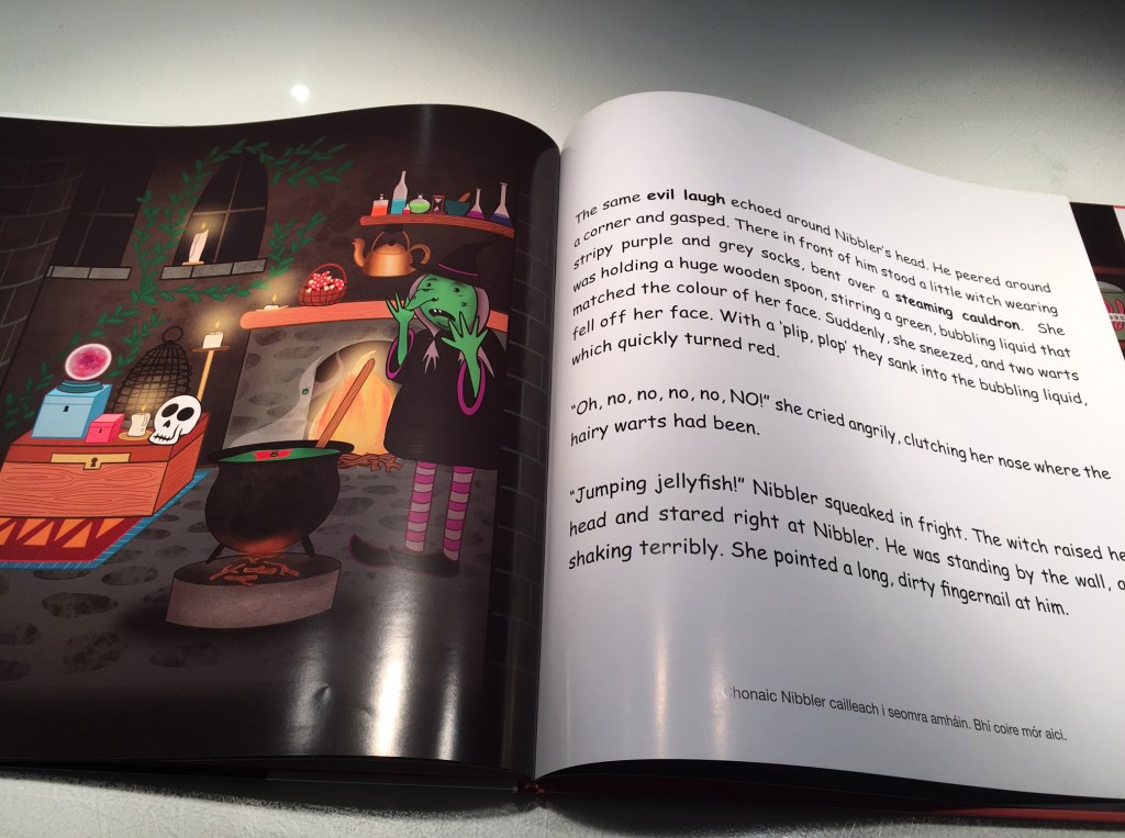 Each Nibbler adventure also contains a shortened conversion of the story to Irish. Using the same story in Irish is beneficial to the children, providing confidence in the language as they can follow Nibbler’s adventure, while also hearing new Irish vocabulary.