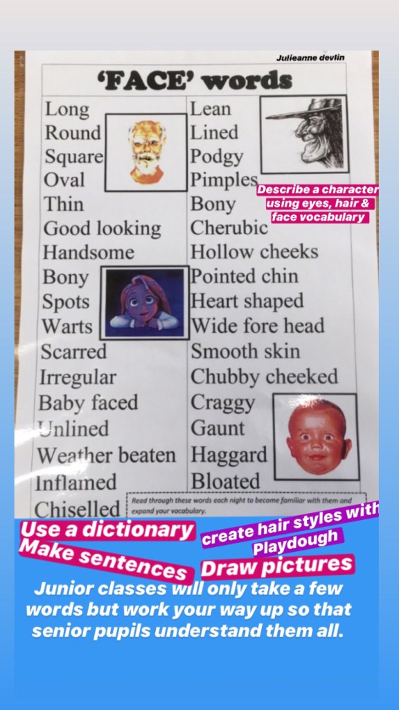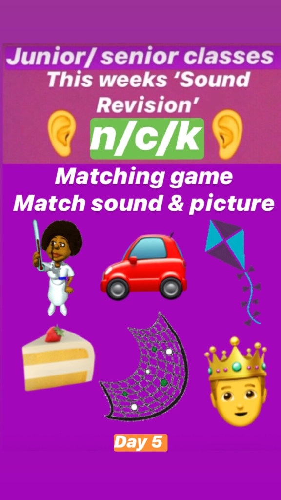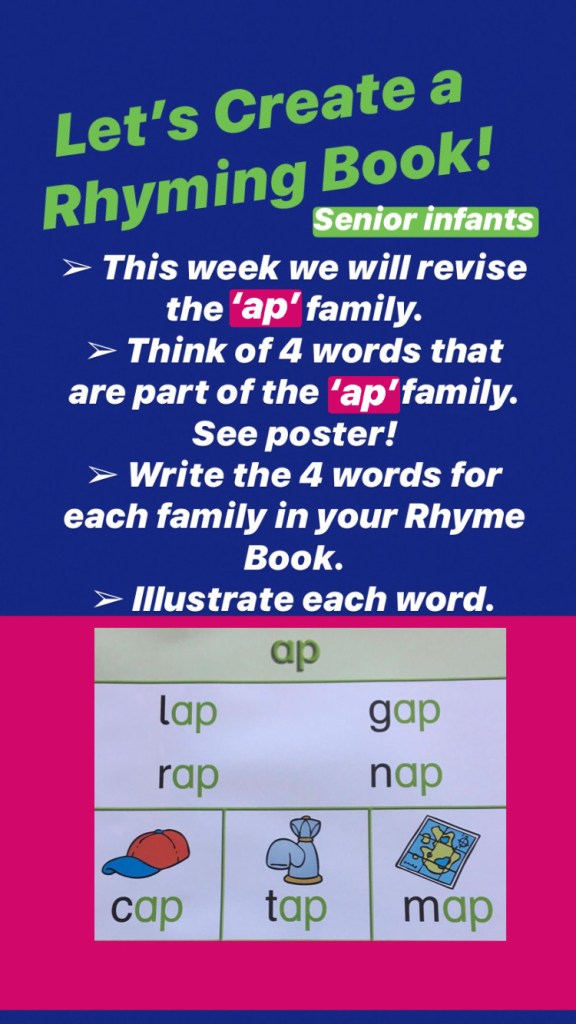 Junior classes: There will be a vet themed word each day (taken from Nibbler’s Aistear Adventures)