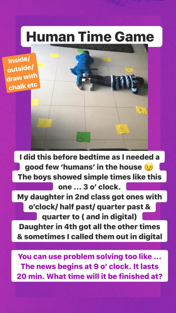 This is a difficult time so there is no pressure on parents to do any of these activities. There is enough stress added to many households as it is. These are just suggestions if you want them…and the suggested work I am putting up for my own multi-grade class of 2nd, 3rd and 4th…but don’t forget to try and slot some reading time into your day! There are activities here for children from 3 years to 12, just select your own class level.
