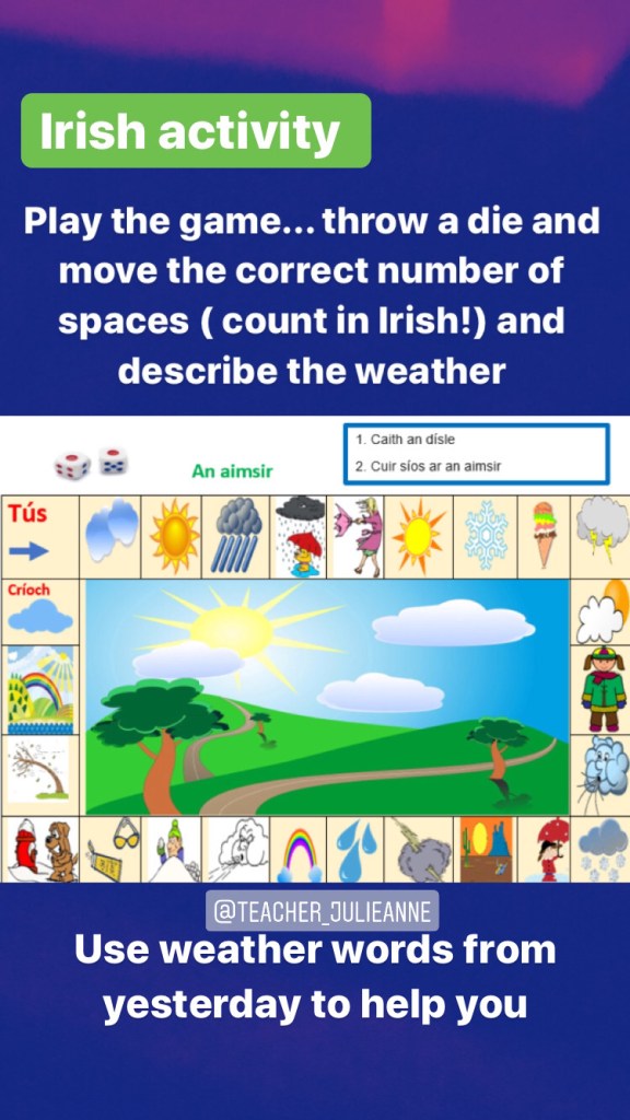 Scéalta le Spraoi Irish read aloud… (If you want today’s read aloud by Futa Fata, check poster below for information)