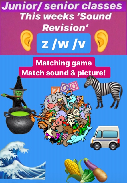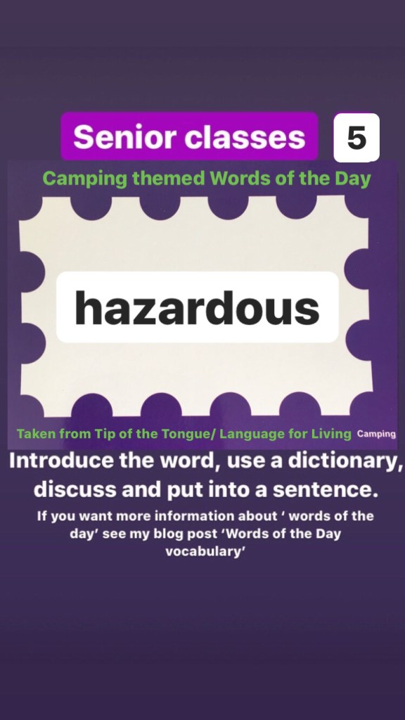 Senior classes: This week we will begin ‘camping’ themed words of the day (Taken from Language for Living Box 3)