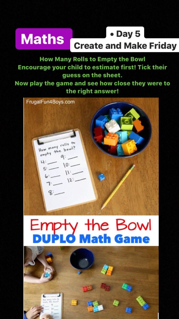 This is a difficult time so there is no pressure on parents to do any of these activities. There is enough stress added to many households as it is. These are just suggestions if you want them…and the suggested work I am putting up for our own school and my multi-grade class of 2nd, 3rd and 4th …but don’t forget to try and slot some reading time into your day! There are activities here for children from 3 years to 12, just select your own class level.