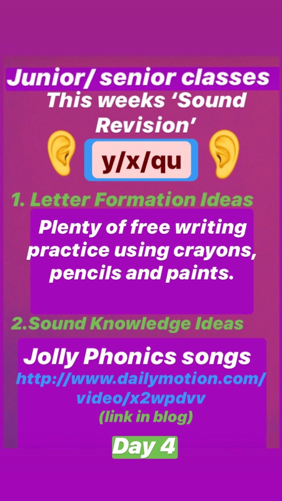 This is a difficult time so there is no pressure on parents to do any of these activities. There is enough stress added to many households as it is. These are just suggestions if you want them…and the suggested work I am putting up for our own school and my multi-grade class of 2nd, 3rd and 4th …but don’t forget to try and slot some reading time into your day! There are activities here for children from 3 years to 12, just select your own class level.