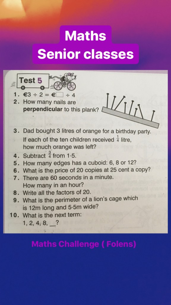 Number facts revision for 1st to senior classes this week