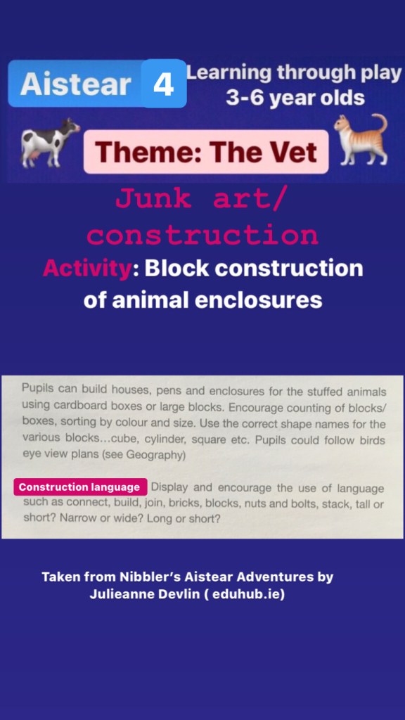 Junior classes: There will be a vet themed word each day (taken from Nibbler’s Aistear Adventures)