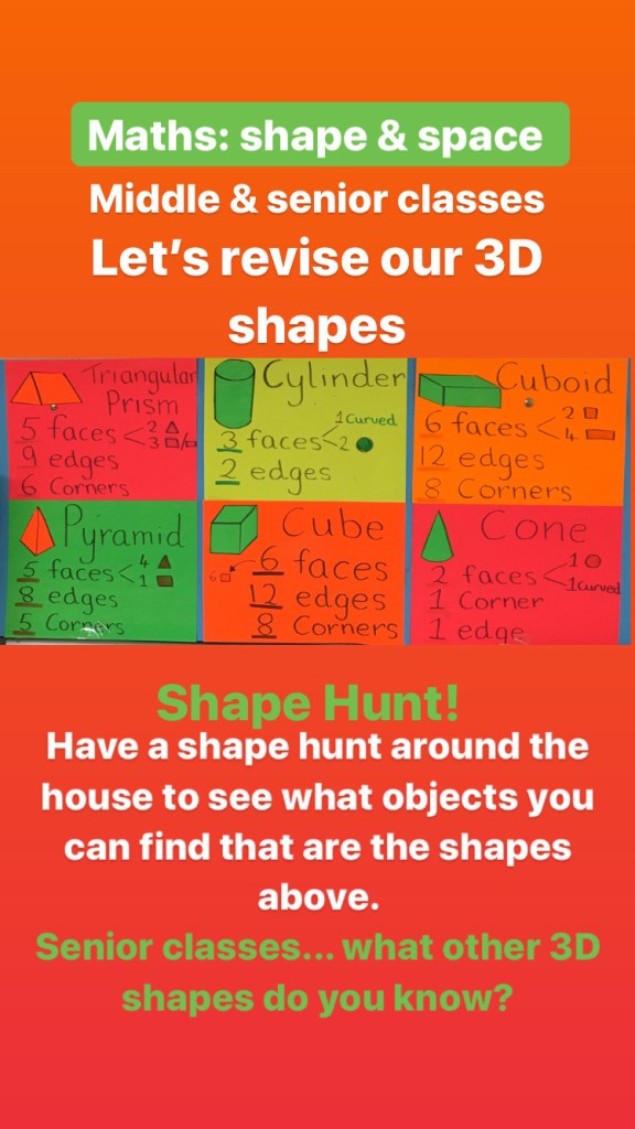This is a difficult time so there is no pressure on parents to do any of these activities. There is enough stress added to many households as it is. These are just suggestions if you want them…and the suggested work I am putting up for our own school and my multi-grade class of 2nd, 3rd and 4th …but don’t forget to try and slot some reading time into your day! There are activities here for children from 3 years to 12, just select your own class level.