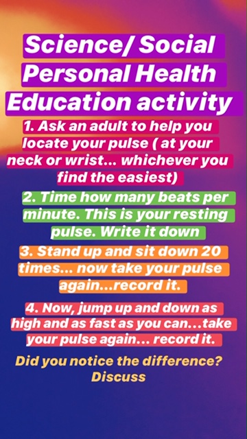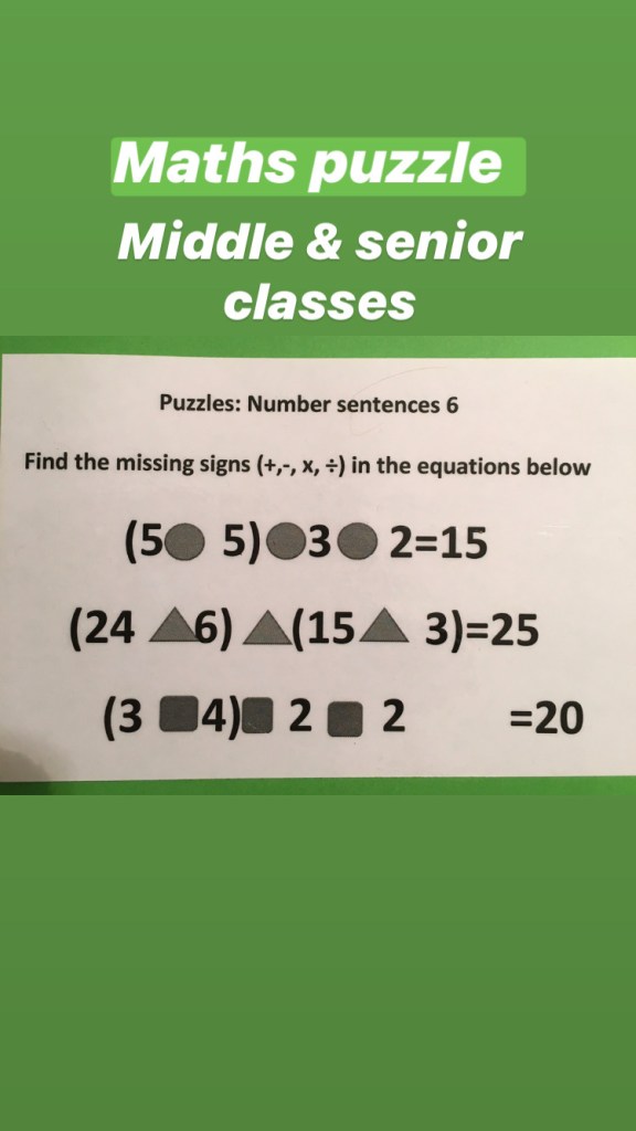 This is a difficult time so there is no pressure on parents to do any of these activities. There is enough stress added to many households as it is. These are just suggestions if you want them…but don’t forget to try and slot some reading time into your day! If you partake in the activities I would encourage you use a copy and keep everything you do each day in the one copy. Maybe you can show all your work to your teacher when you return to school!