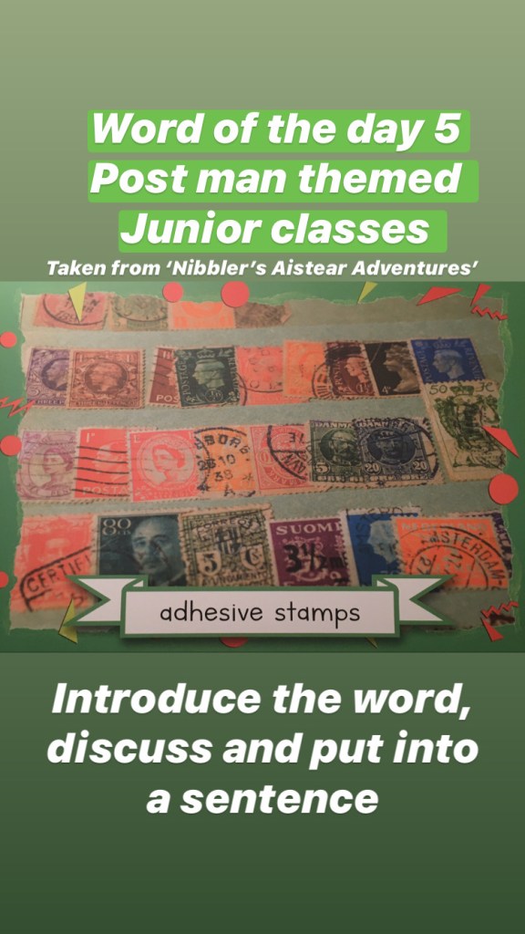 Junior classes: There will be a post office themed word each day (taken from Nibbler’s Aistear Adventures)