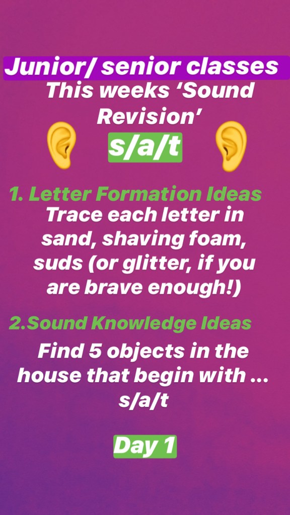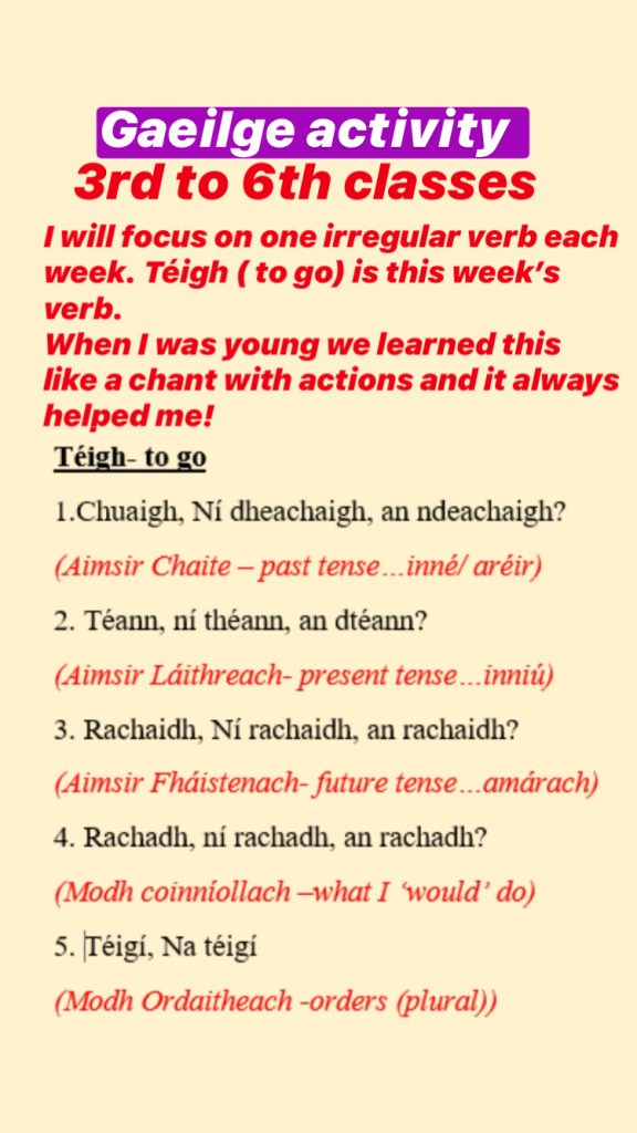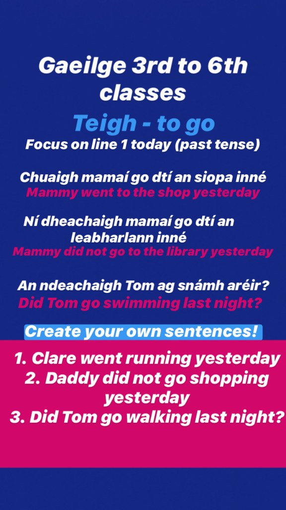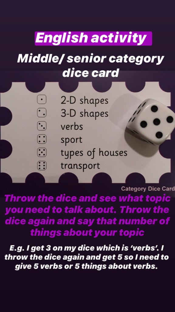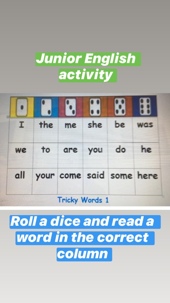 This is a difficult time so there is no pressure on parents to do any of these activities. There is enough stress added to many households as it is. These are just suggestions if you want them…but don’t forget to try and slot some reading time into your day! If you partake in the activities I would encourage you use a copy and keep everything you do each day in the one copy. Maybe you can show all your work to your teacher when you return to school!
