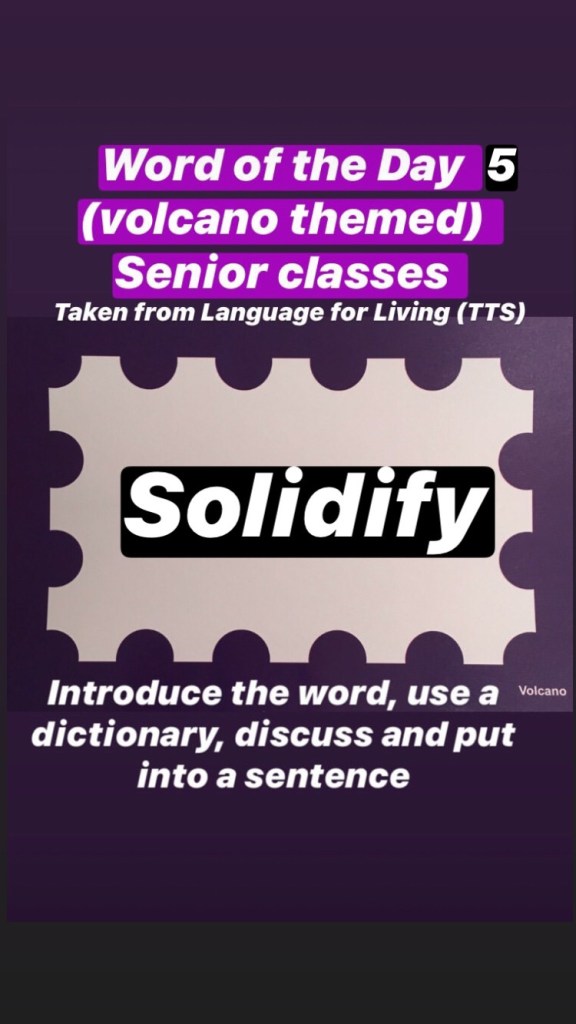 Senior classes: There will be a ‘volcano’ themed word each day. (Taken from Language for Living Box 3)