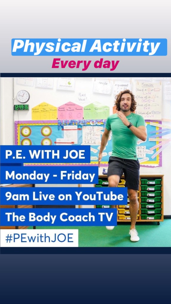 Wake Up Run! We usually do a Wake Up Run at school, so another option is to log in daily to P.E. with Joe