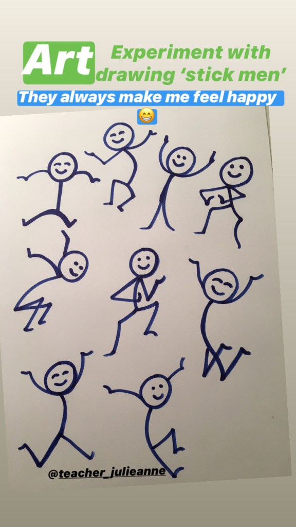 Everyone can draw stick-men (or stick ladies!)…practice drawing them in different positions…you will need your favourite stick-person drawing for Friday!