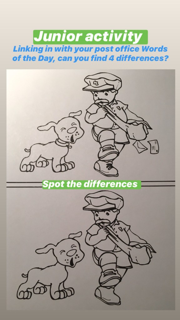 Junior classes: There will be a post office themed word each day (taken from Nibbler’s Aistear Adventures)