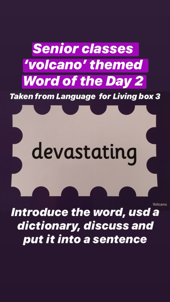 Senior classes: There will be a ‘volcano’ themed word each day. (Taken from Language for Living Box 3)