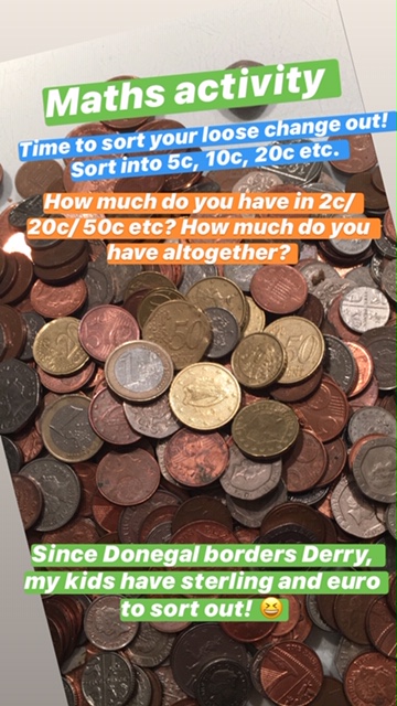 5.Change the coins from cent to euro e.g. 57c = ā¬0.57 (you don’t use the cent sign and ⬠sign at the same time). Practice your mental maths…how much more do you need to get ā¬1 or ā¬2 etc.