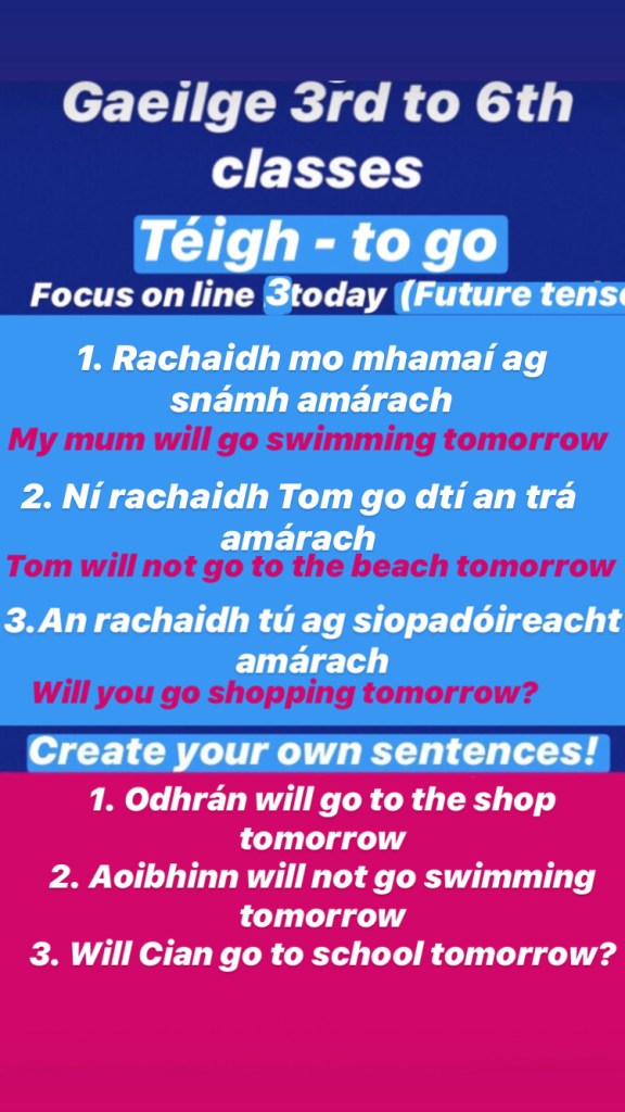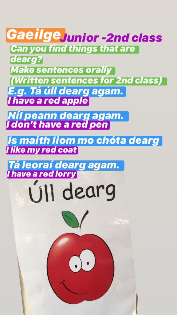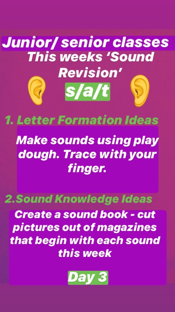 Junior classes: There will be a post office themed word each day (taken from Nibbler’s Aistear Adventures)