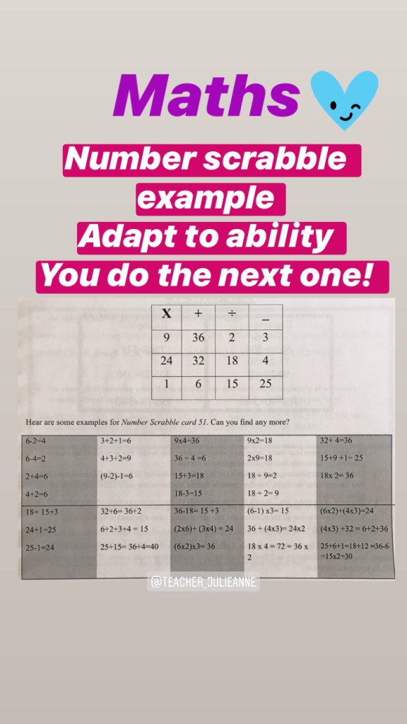 If you want to message me, please do so on my Instagram account @teacher_julieanne or e-mail me. My details are at the bottom of the ‘home’ page. I’m enjoying your lovely responses…Show me photographs I can post! (I’ll block children’s faces and mention no names! It’s lovely to share at this time.