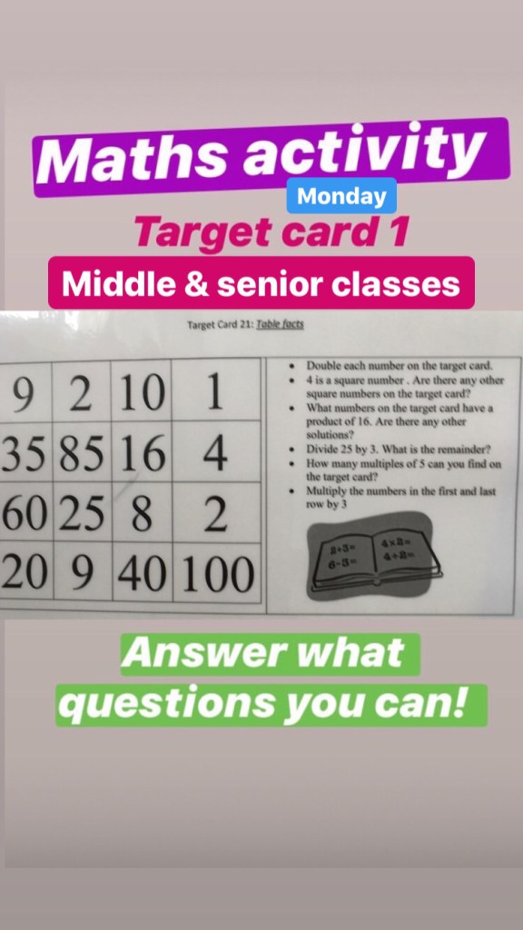 This is a difficult time so there is no pressure on parents to do any of these activities. There is enough stress added to many households as it is. These are just suggestions if you want them…and the suggested work I am putting up for our own school and my multi-grade class of 2nd, 3rd and 4th …but don’t forget to try and slot some reading time into your day! There are activities here for children from 3 years to 12, just select your own class level.