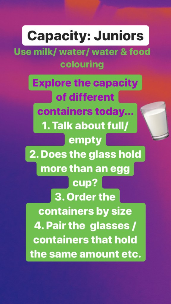 I will be focusing on ‘capacity’ alot this week for all classes so get your measuring jogs, ladles and spoons ready!