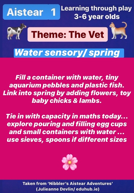 Junior classes: There will be a vet themed word each day (taken from Nibbler’s Aistear Adventures)