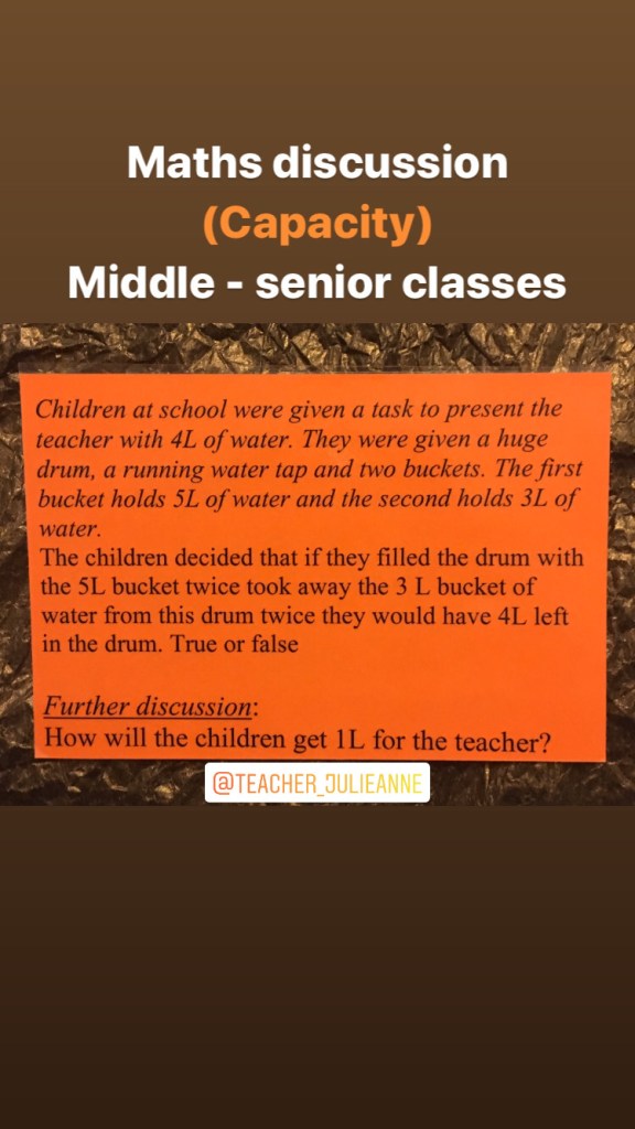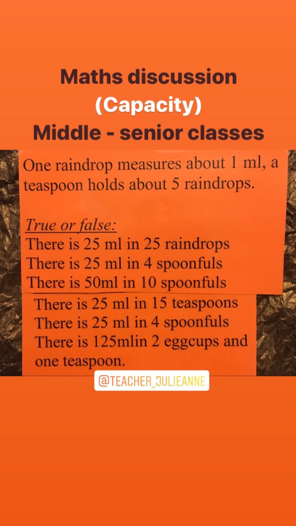 I will be focusing on ‘capacity’ alot this week for all classes so get your measuring jugs, ladles and spoons ready!