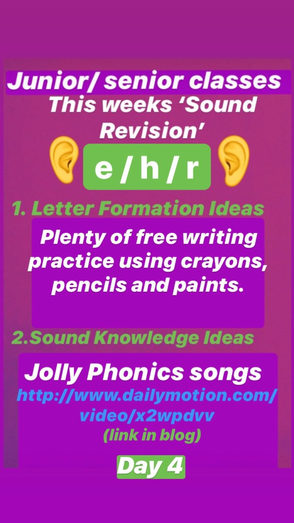 Junior classes: There will be a vet themed word each day (taken from Nibbler’s Aistear Adventures)