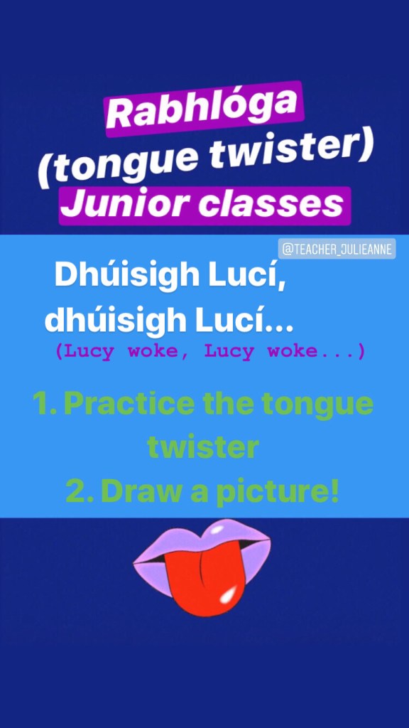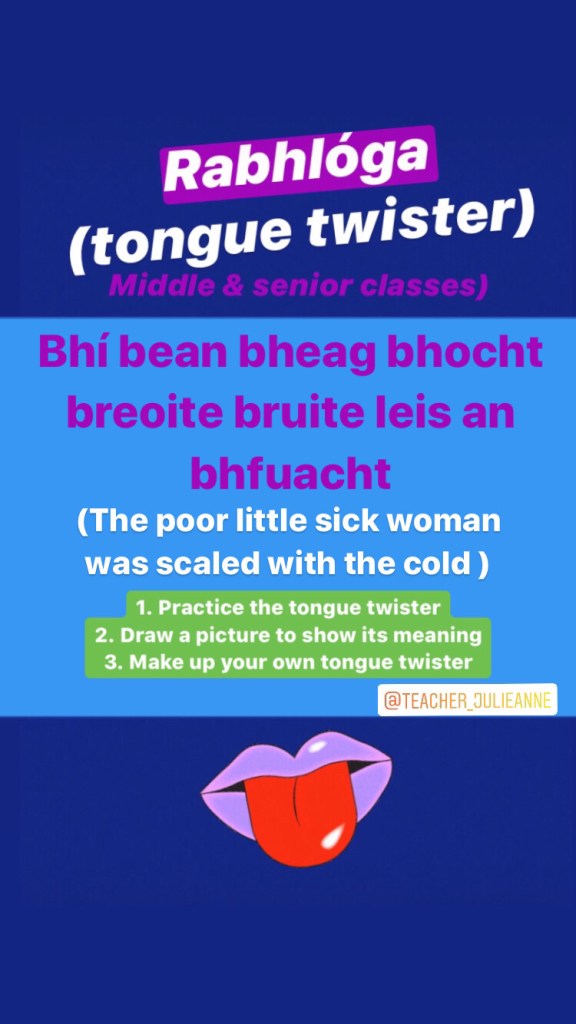 Scéalta le Spraoi Irish read aloud… (If you want today’s read aloud by Futa Fata, check poster below for information)