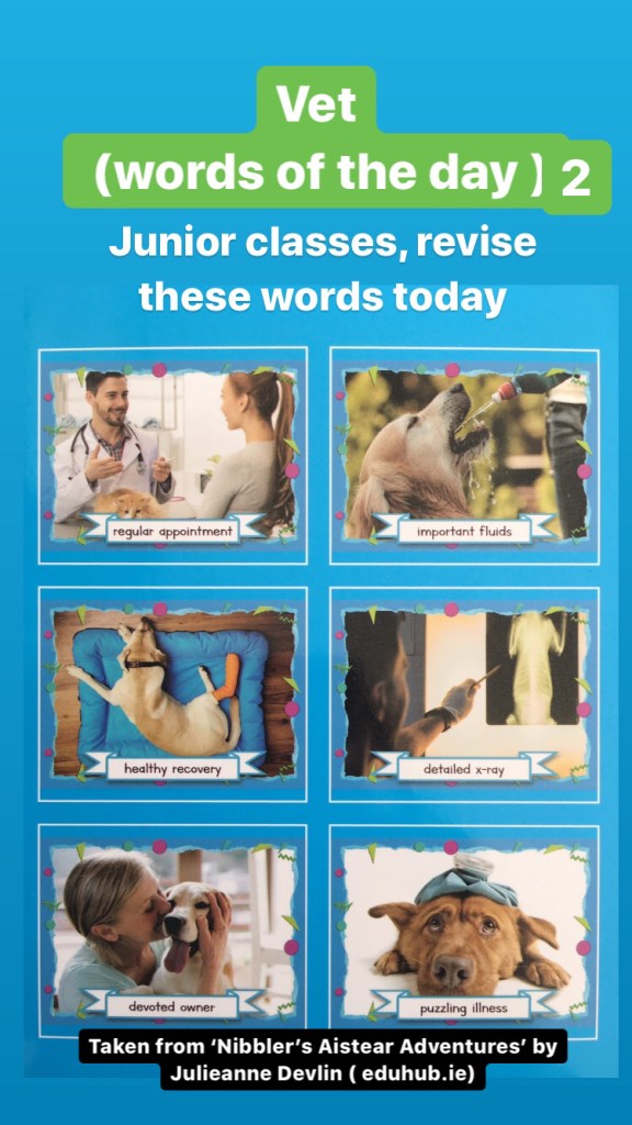 Junior classes: There will be a vet themed word each day (taken from Nibbler’s Aistear Adventures)