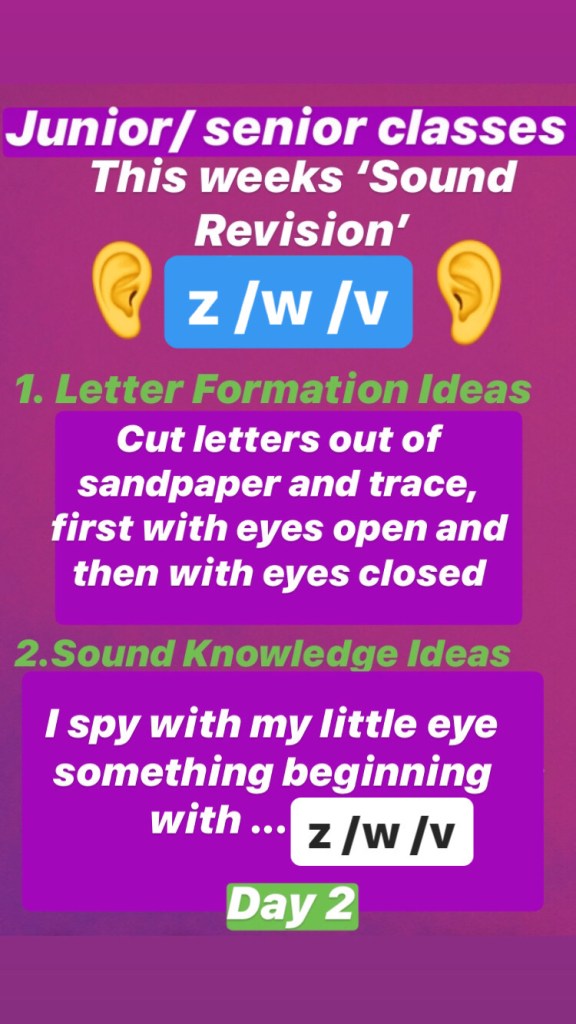 Junior classes: There will be a fire themed word each day (taken from Nibbler’s Aistear Adventures)