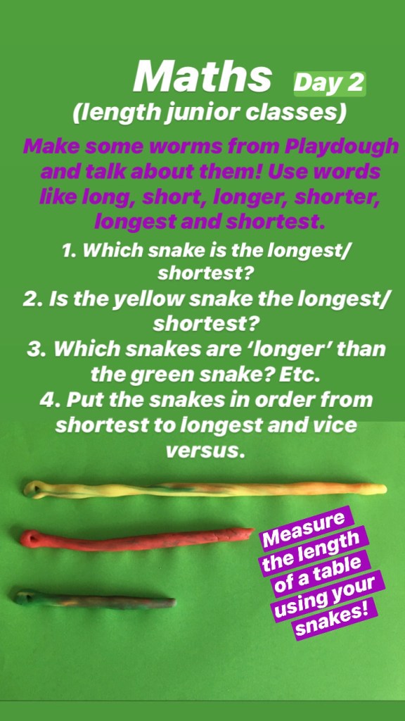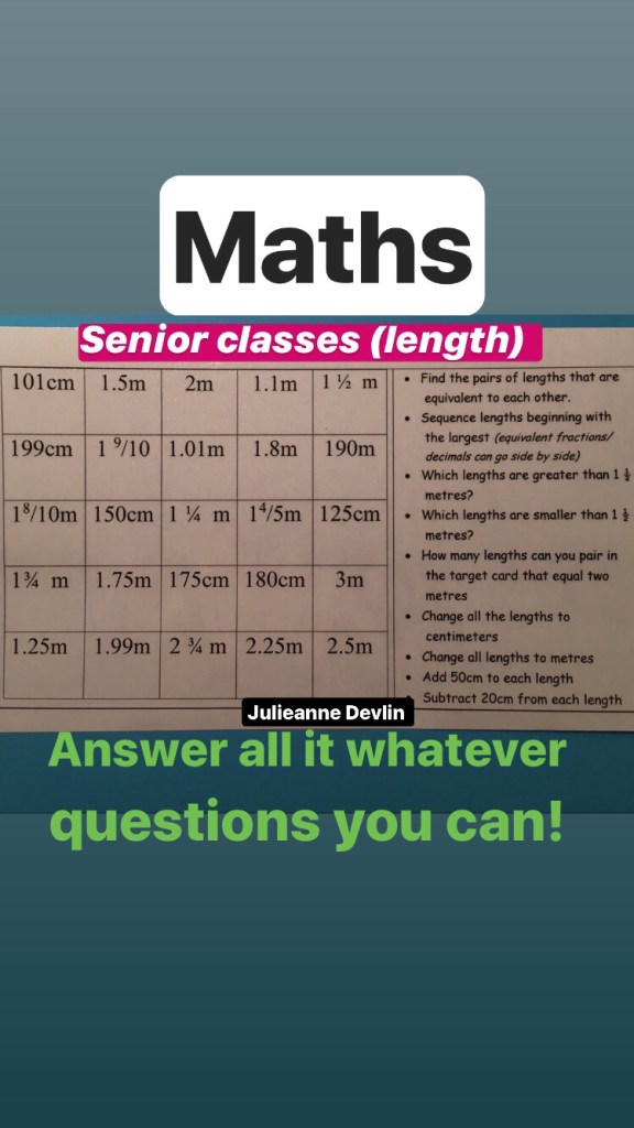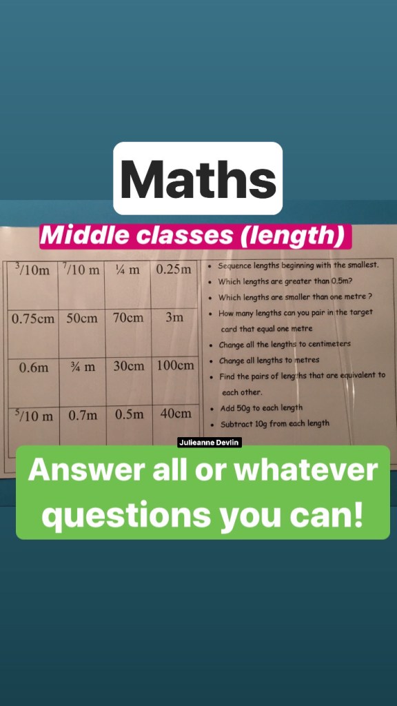 This is a difficult time so there is no pressure on parents to do any of these activities. There is enough stress added to many households as it is. These are just suggestions if you want them…and the suggested work I am putting up for my own multi-grade class of 2nd, 3rd and 4th…but don’t forget to try and slot some reading time into your day! There are activities here for children from 3 years to 12, just select your own class level.