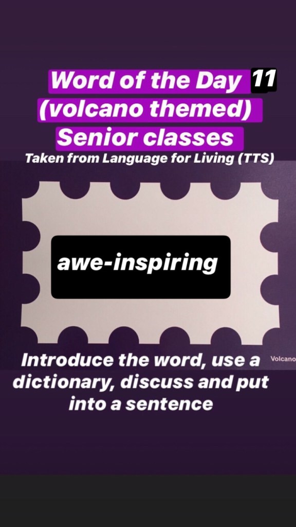Senior classes: There will be a ‘volcano’ themed word each day. (Taken from Language for Living Box 3)