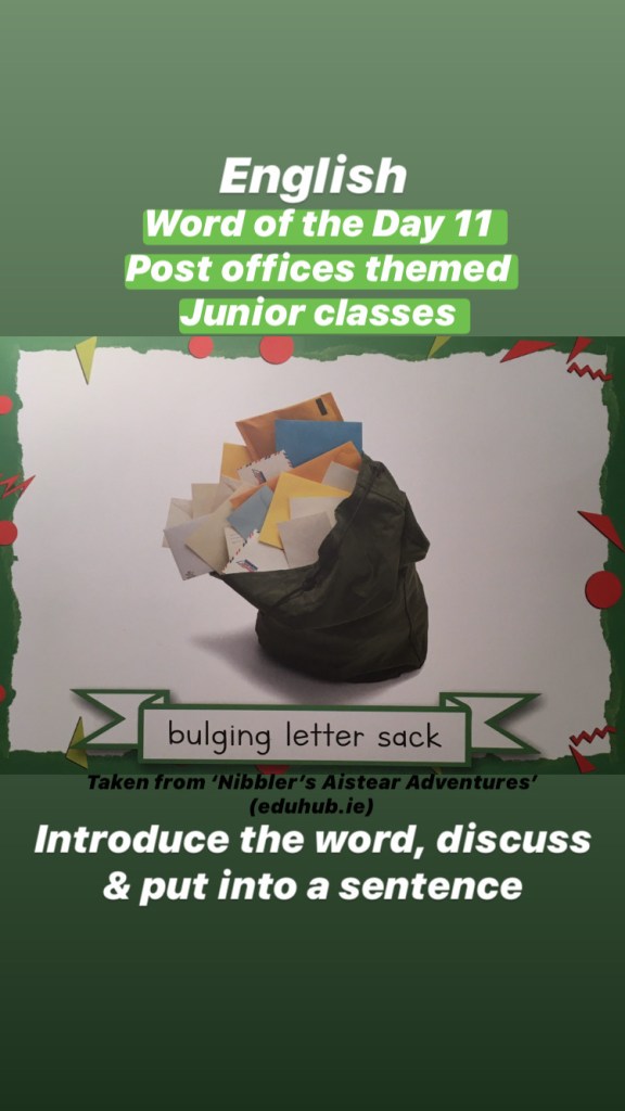 Junior classes: There will be a post office themed word each day (taken from Nibbler’s Aistear Adventures)