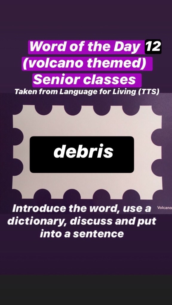 Senior classes: There will be a ‘volcano’ themed word each day. (Taken from Language for Living Box 3)