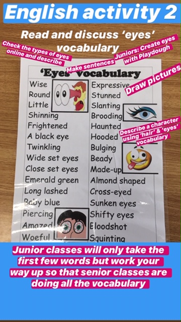 These activities are taken from my oral language and vocabulary development resource ‘Language for Living’ (TTS or eduhub.ie)