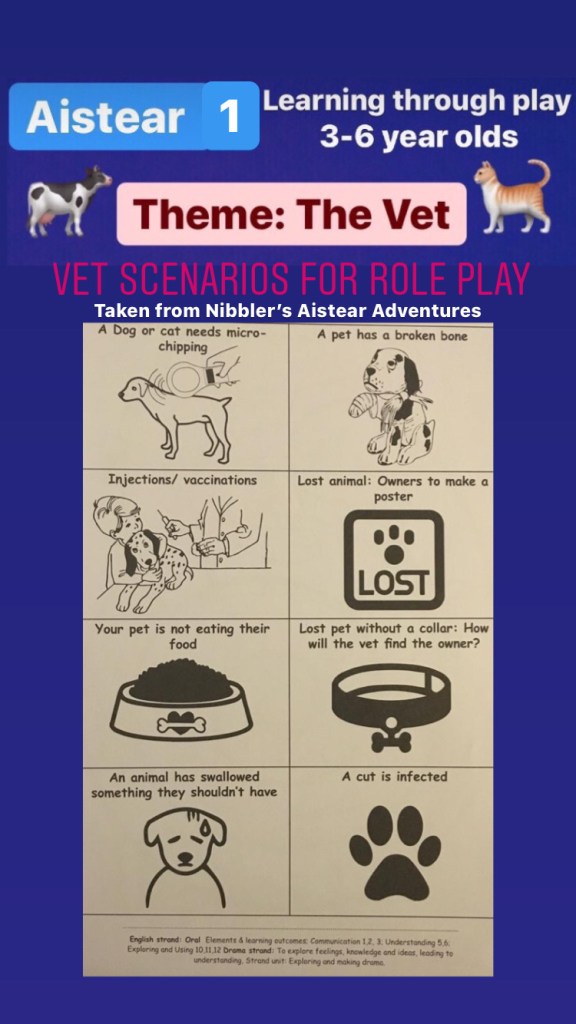 Aistear: Learning through play (Vet theme) for 3-6 year olds