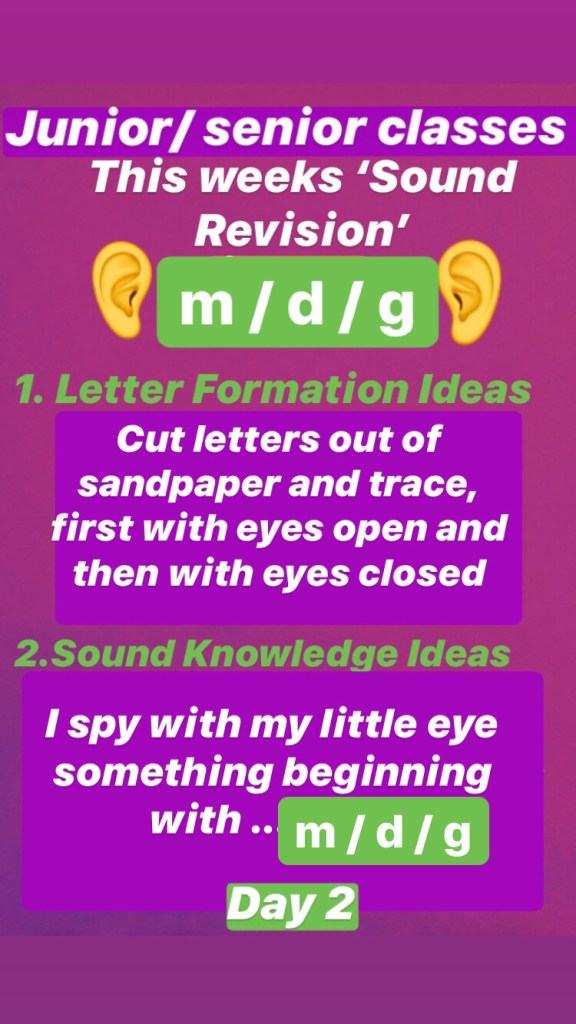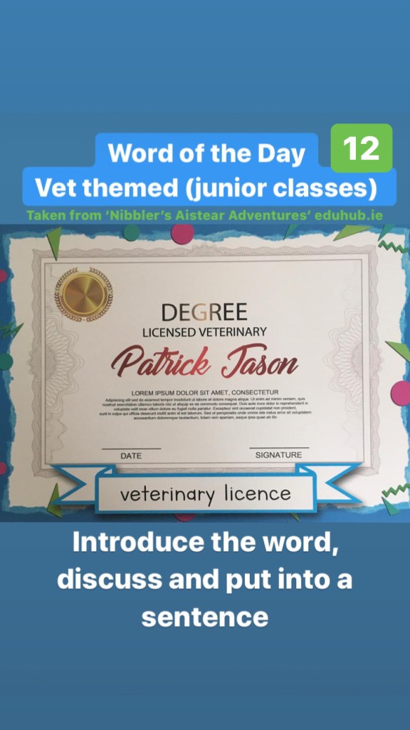 Junior classes: There will be a vet themed word each day (taken from Nibbler’s Aistear Adventures)
